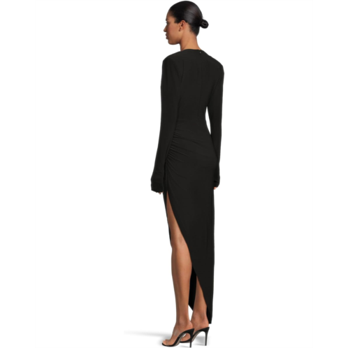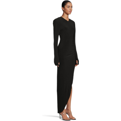 Norma Kamali Long Sleeve Shoulder Pad V-Neck Side Drape Gown