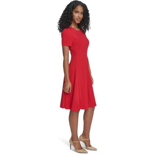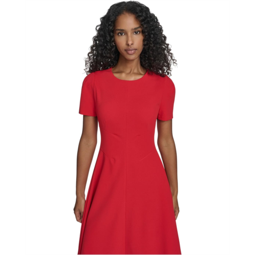 Calvin Klein Short Sleeve Scuba Crepe A-Line Dress.