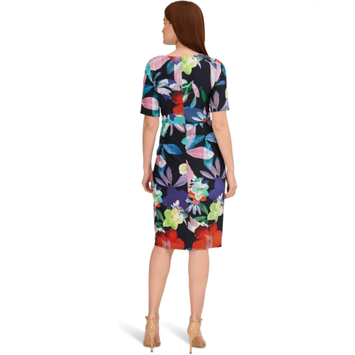 Adrianna Papell Printed Stretch Crepe Chiffon Short Sleeve Side Wrap Dress
