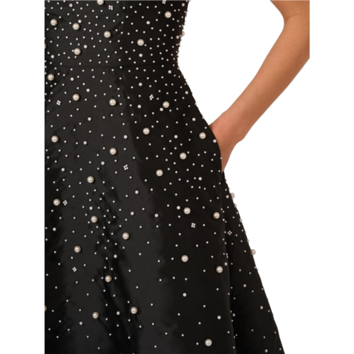 Illuminate the night in the Adrianna Papell Bead Taffeta Midi Dress, where intricate embroidery dances across the fabric like constellations. With a graceful boat neck and a flattering fit-and-flare silhouette, this sleeveless wonder captivates effortlessly. Zippered closure ensures ease, making it a stellar choice for any soiree.