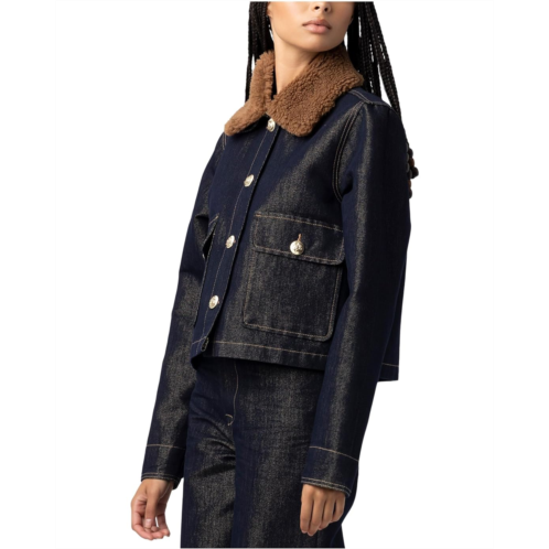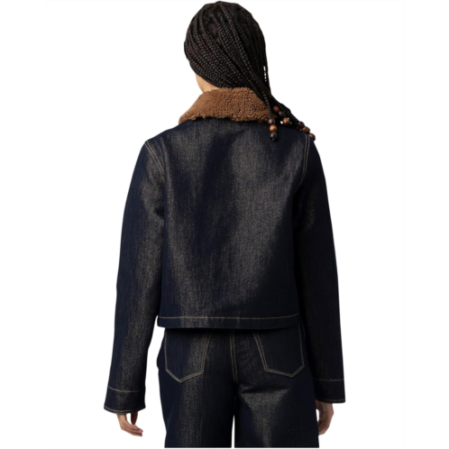 Blank NYC Metallic Denim Jacket with Faux Sherpa Collar in Blue