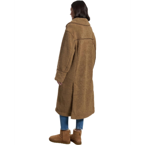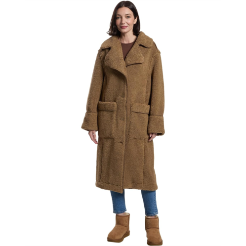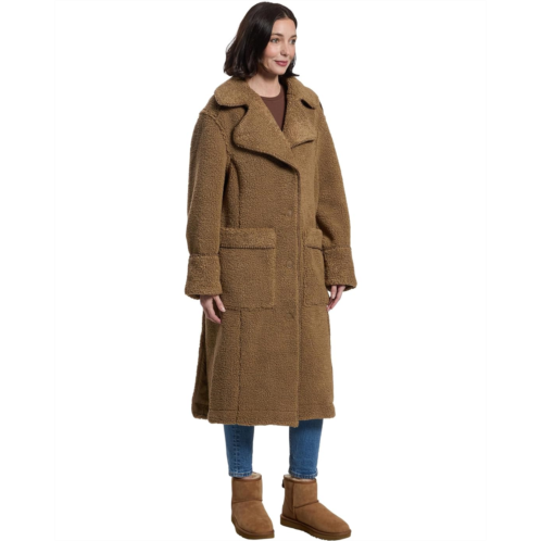 The UGG Sema Uggfluff Coat is a full-length plush fleece coat that features whipstitch details throughout. Its buttoned front closure has UGG Logo faux horn buttons, while the polyester fabric takes your comfort to the next level. This button-down overcoat is styled with long sleeves, a collared neckline, and a straight hem.
