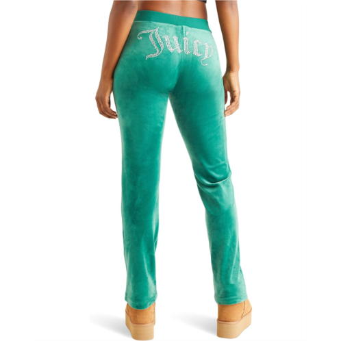 Lounge in style or be on-the-go in comfort with the Juicy Couture Rib Waist Velour Pants with Drawcord.