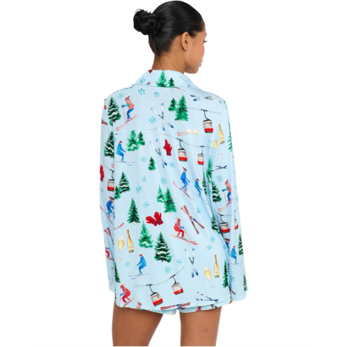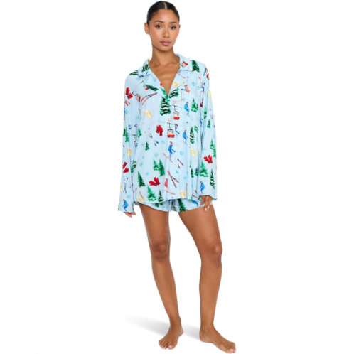 Super soft and silky, the Show Me Your Mumu Favorite PJ Set is paired with a drawstring waisted short with a long sleeve button up blouse in our Queen of Hearts silky fabric print.