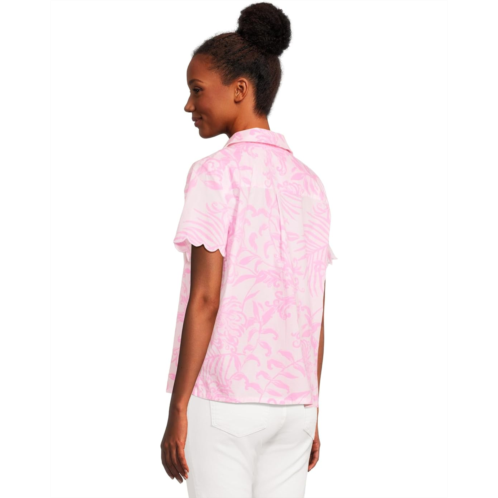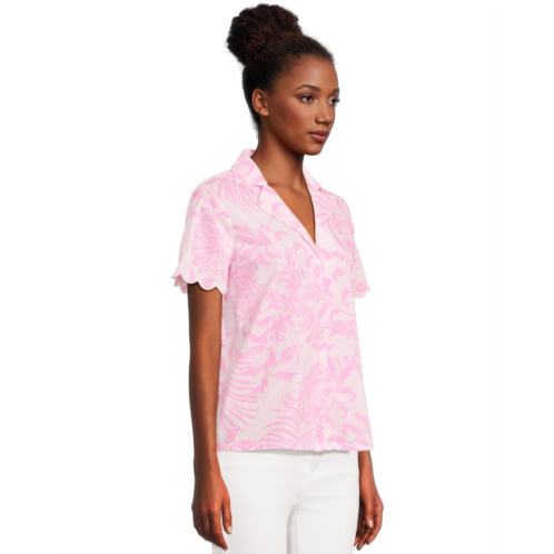 Embrace a laidback evening in the cozy Lilly Pulitzer Marlita Pj Top. Featuring an easy fit, PJ button-up shirt with branded buttons, front placket, collared neckline and scalloped edge sleeve hems.