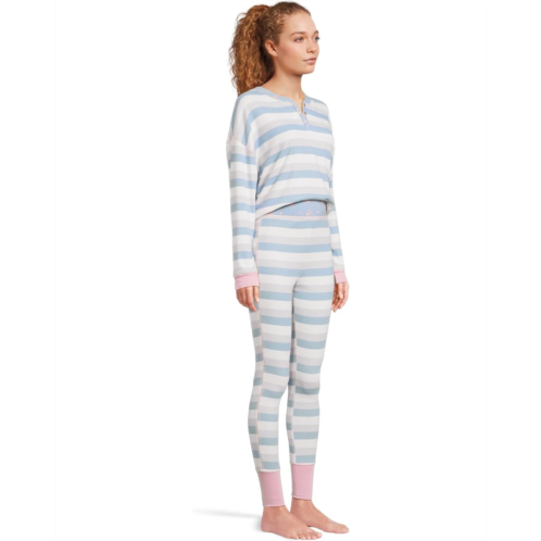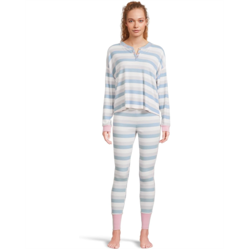 This Honeydew Intimates Back In Bed PJ Set includes a matching long-sleeved top and jogger made of a super-soft brushed rib knit. The top features a button collar with a softly draping hem, and the jogger features a sleek fit with an elasticized waist and cuffed ankles. These are the PJs you'll want to live and lounge in 24/7!