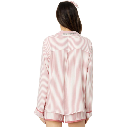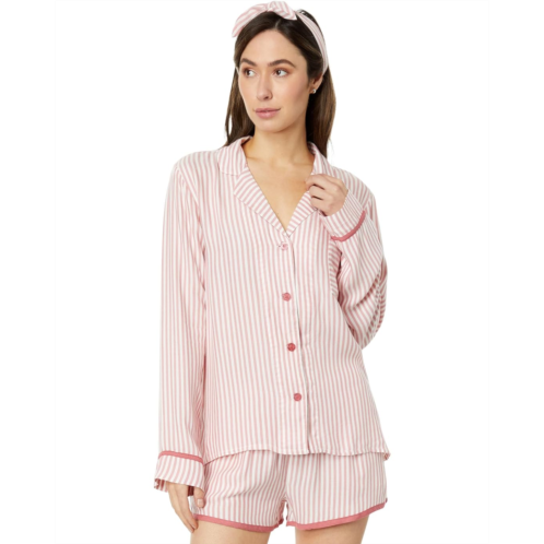 Get into a relaxed vibe for catching up on your favorite movie in the P.J. Salvage Stripe Hype PJ Set with Headband. Crafted from the softest woven sateen it includes a notched collar and long sleeve button-up shirt with one patch pocket on the left chest. A luxe pajama shorts with side hand pockets and elasticized drawstring waistband. You can match it with a bow knotted headband.