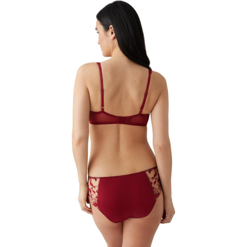 Feel comfortable wearing the fashionable Wacoal Dramatic Interlude Underwire 855379. This mid coverage bra features embroidered cut-and-sew mesh cups with metallic details, embroidered decorative front straps, mesh straight back, and adjustable back straps for a customized fit. It comes with adjustable hook-and-loop back closure.