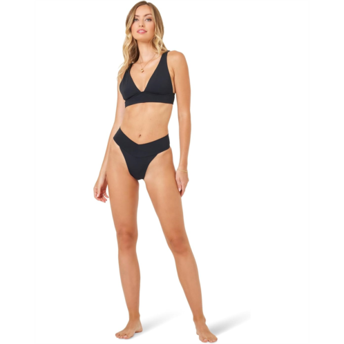 Slay a stylish look at the beach or grab all the attention at the pool party by wearing the L*Space Harley Top. The triangle bralette has a plunging silhouette, wide straps, removable pads, tie-back closure, and soft cups. The sleeveless bralette is a stunning addition to your swimwear collection.
