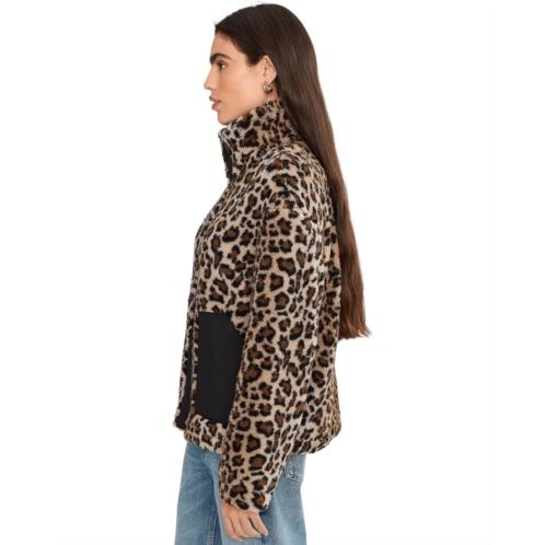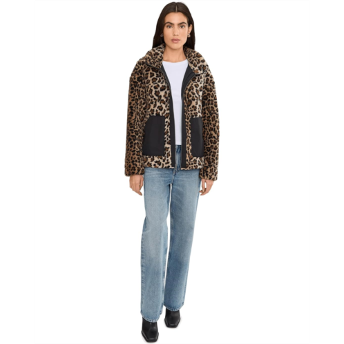 Super cozy stand collar sherpa jacket with detailed zipper tape, features a center front zipper closure with snap overlay, two lower zipper pockets with nylon detail, and rib knit cuffs. Travel essentials: Take this warm yet stylish jacket with you on a weekend getaway making it a low-maintenance travel piece.