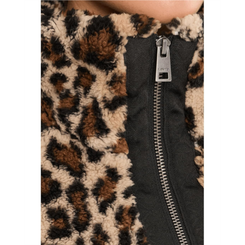 Stylish Feature: solid and patterned zipper tape on color options, cozy soft-touch sherpa fabric, rib knit cuffs, Levi's red tab logo at lower left.