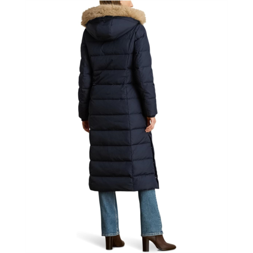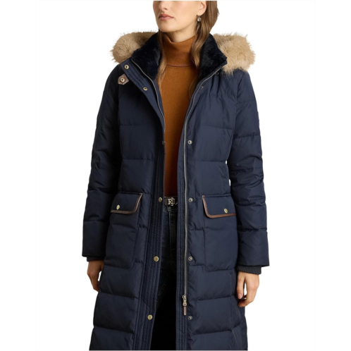 The epitome of effortless chic, LAUREN Ralph Lauren Ff Trim Puffer 50/50 45'. Crafted with channel quilting and insulated with 500-fill-power down, this maxi-length puffer offers unmatched warmth without the bulk. The faux fur-trimmed detachable hood and faux-leather accents add a modern, luxurious edge, while the mockneck with a snapped throatlatch shields you from chilly winds in style. Functional snap-flap pockets and elasticated cuffs enhance coziness, and every detail, from the custom 'LRL' metal snaps to the signature sleeve logo patch, exudes refined craftsmanship. Fully lined for ultimate comfort, this coat transforms cold-weather dressing into a statement of effortless elegance.