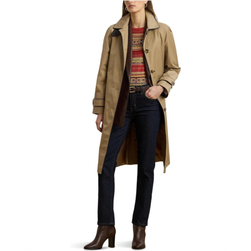 Layer up your look with the chic and refined Lauren Ralph Lauren PU Trim Balmacaan 42' Coat. The water-repellent coat features a collared neck, full button-front closure, long sleeves with buttoned cuffs, two hand pockets at the front, and a slightly longer length.