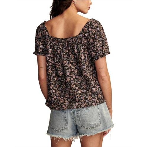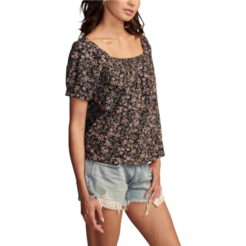 Lucky Brand Square Neck Printed Short Sleeve Top