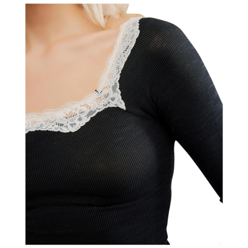 Wrap yourself in the softness of the Free People Oh My Darling Long Sleeve. Made of a cozy micro rib material, this top features a wide boat neckline with delicate lace piecing for a feminine touch. The lettuce-edged trimming on the hem adds a sweet detail to this must-have piece.