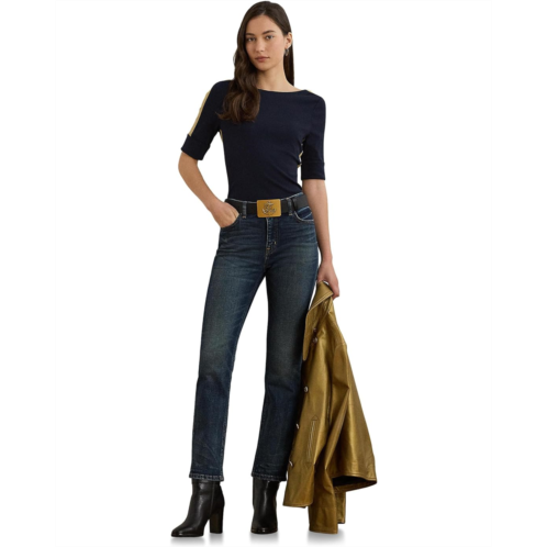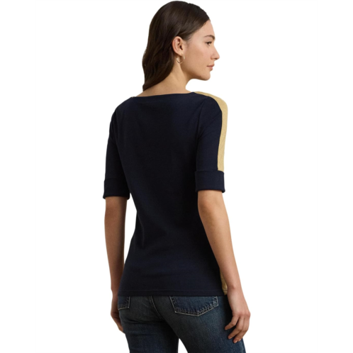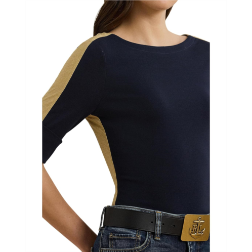 POLO RALPH LAUREN Petite Two-Tone Stretch Cotton Elbow-Sleeve Tee