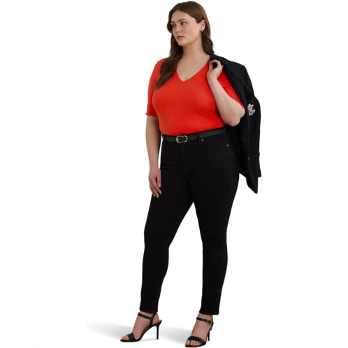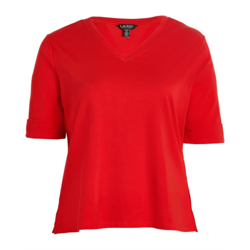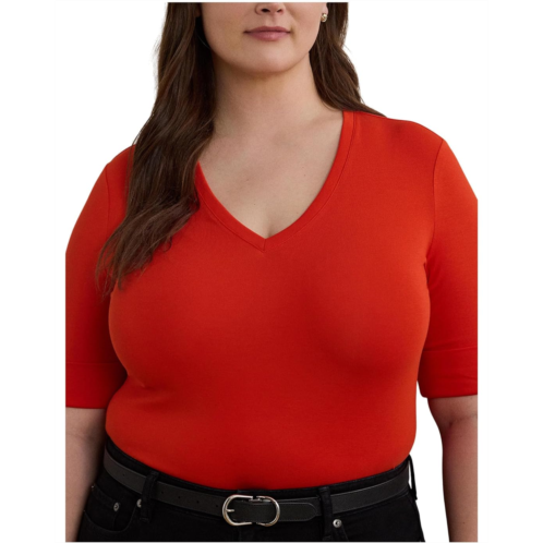 POLO RALPH LAUREN Plus Size Stretch Cotton Elbow-Sleeve V-Neck Tee
