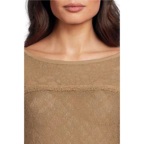 Exude an elegant allure wherever you go wearing the Free People Lace Layering Long Sleeve Top. The pull-on style top features allover lace detailing, a boat neckline, long sleeves with flared cuffs, contrasting lace panels, and a straight hem.