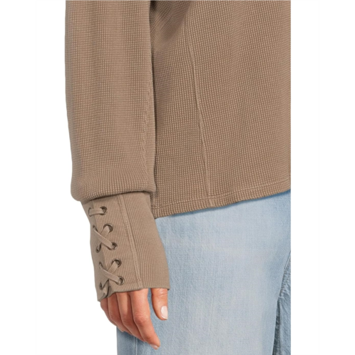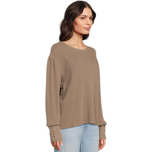 The Free People Lapis Cuff top features a relaxed, oversized fit with dropped shoulders, a rounded neckline, and voluminous sleeves that bring soft structure. Lace-up cuffs add a chic flair to this standout layering piece.