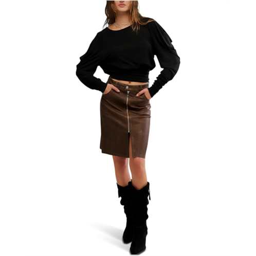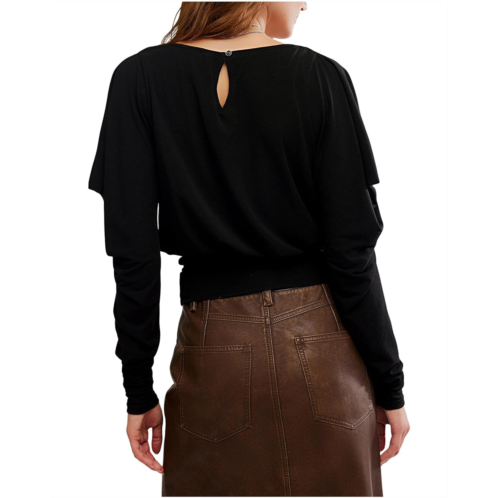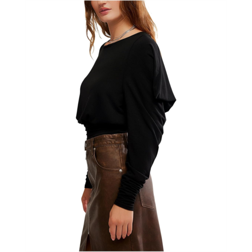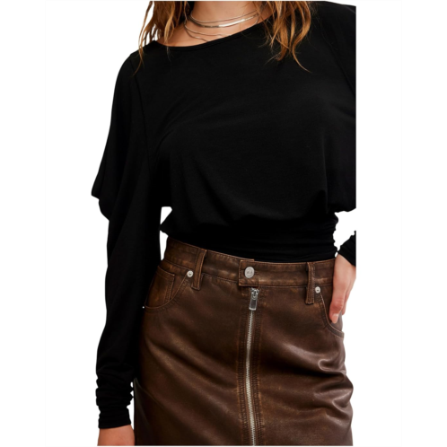 The Free People Moxie Long Sleeve top features intentional draping that creates a bubbled bodice, voluminous shoulders, and fitted forearms for a striking silhouette. The boat neckline and modern mutton sleeves add vintage-inspired drama, while a banded hem and keyhole detail at the back offer subtle structure.