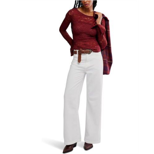 Exude an elegant allure wherever you go wearing the Free People Lace Layering Long Sleeve Top. The pull-on style top features allover lace detailing, a boat neckline, long sleeves with flared cuffs, contrasting lace panels, and a straight hem.
