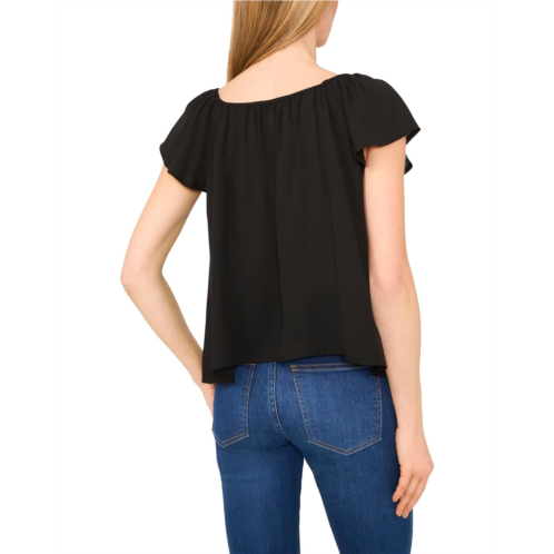 CeCe Center Front Tie Round Neckline Flutter Sleeve Top