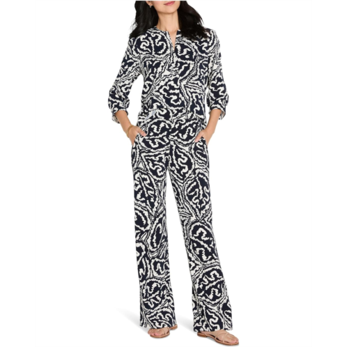 NICZOE Petite Indigo Leaf Double Crepe Top