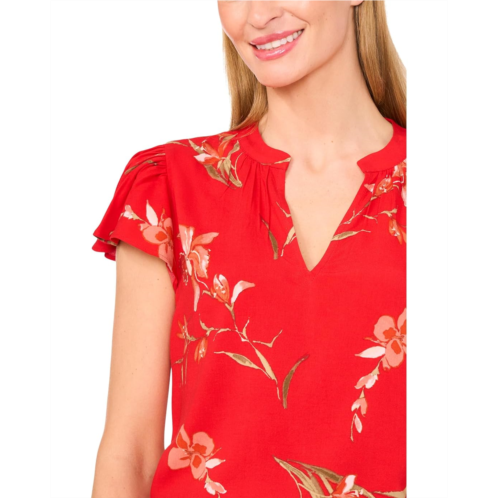 CeCe V-neck Shirred Neck Flutter Sleeve Blouse