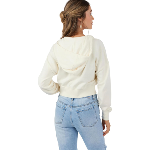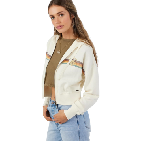 Layer a stylish look with this fleece zip-up hooded O'Neill Darcie sweatshirt and feel cozy all day long. It features a printed art design on the right sleeve and kanga pockets.