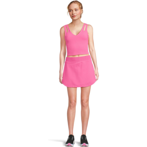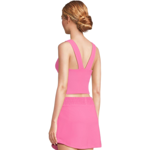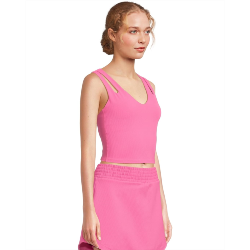 Keep up with the trend in absolute style wearing Beach Riot Evelina Top. Crafted from a soft sweat-wicking waffle fabric, the pull-on style top features removable soft cups, cut-outs on the straps, and a built-in shelf bra. It comes with a scoop neck, fixed straps, a strappy back, a wire-free construction, and a long line silhouette.