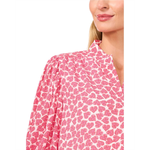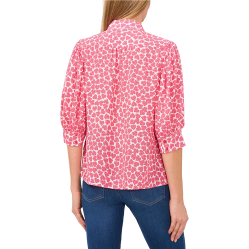 CeCe Heart Ruched Sleeve Hidden Placket Blouse