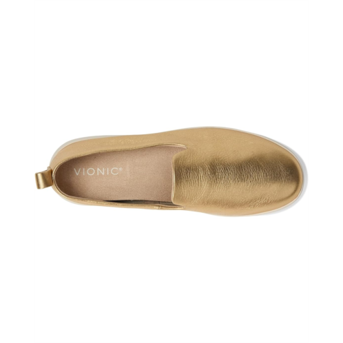 Meet the VIONIC Uptown Willa shoes - your go-to for next-level comfort in a sporty, packable design. With an ultra-lightweight, flexible outsole, these sneakers offer serious stability and arch support, ensuring every step feels just right. The soft deconstructed leather upper and stretch collar make slipping them on and off effortless. Their built-in VIO MOTION Technology footbed features contoured arch support, with shock-absorbing cushioning, and a deep heel cup to provide stability and forefoot flexibility. These slip-on shoes are made of an EVA insole and polyester lining. For optimal comfort, wear your new Vionic shoes for a few hours to let your feet adapt. Within 1-2 weeks, you should experience full orthotic comfort and support. Whether you're on the move or just taking it easy, these leather sneakers are the perfect blend of style and comfort in a customer-favorite silhouette.