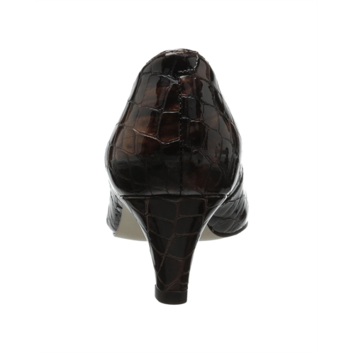 Features a modest, sculpted, leather-wrapped heel.