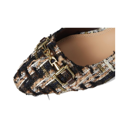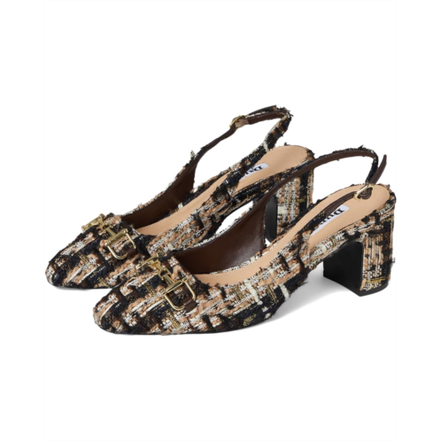 Bring an instant dose of polish and sophistication to your attire donning the Dune London Choiced Dress Heels. Timeless and effortlessly comfortable, these shoes feature a textured fabric upper with an almond toe and a sleek metallic branded snaffle trim detailing at the vamp. Elevated by a sturdy block heel and secured with an adjustable buckle on the slingback strap, the footwear equally parts style and comfort.