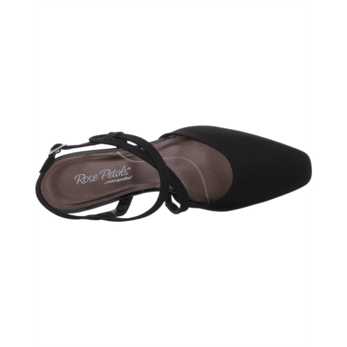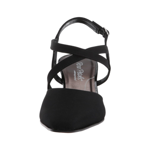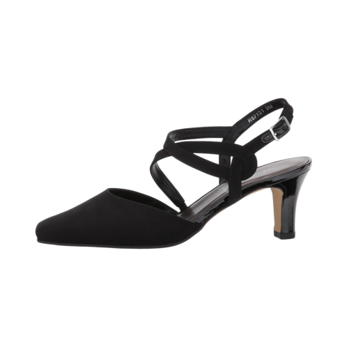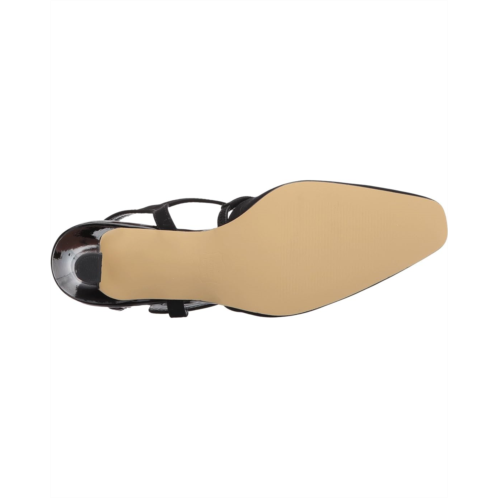 Slingback strap offers an adjustable buckle closure.