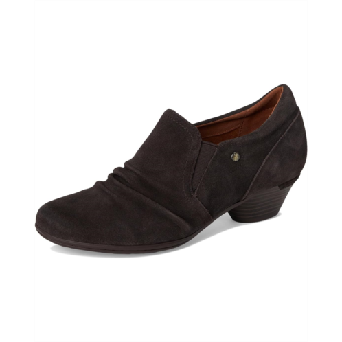 A modern classic with a touch of tradition styling Cobb Hill Lucy! This chic slip-on shoe features a luxurious suede upper and a round toe design for a modern look. With its pull-on lace design, you'll enjoy easy wearability and a secure fit. The cushioned sock and PU footbed deliver exceptional arch support and all-day comfort, while the polyester lining ensures a soft touch. The synthetic rubber outsole provides superior traction and flexibility, making every step a breeze.