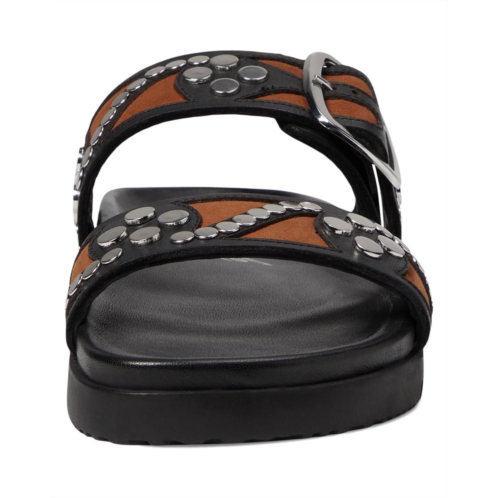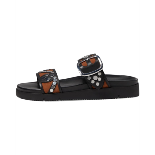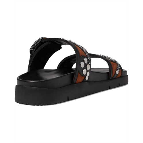 Stay free while walking outdoors by wearing Free People Revelry Studded Sandal. The sandal features a slip-on style and double strap embellished design with large buckle back strap. It has leather upper, leather lining, and insole.