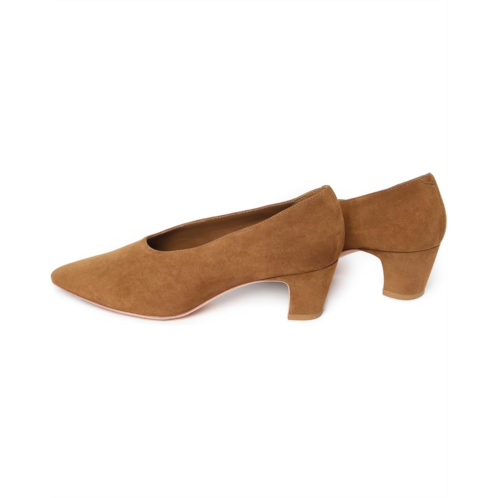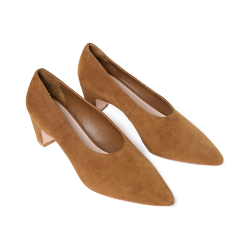 A chunky heel elevates the classic look of Loeffler Randall Maeve Low Pump. The low-top footwear features a padded leather footbed with stamped logo detail, a pointed toe, and slip-on closure.