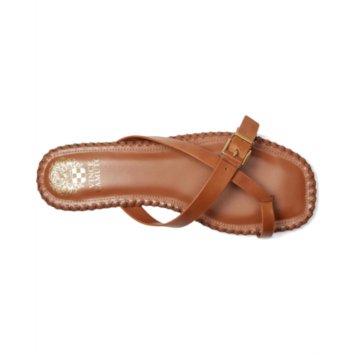 Stride with confidence wearing the Vince Camuto Kellon Toe Loop Flat Sandals. Crafted from leather upper, and polyurethane lining, this pair of sandals features open square toe, slip-on style, padded footbed, buckle detailing on the strap, and brand detailing on the footbed.