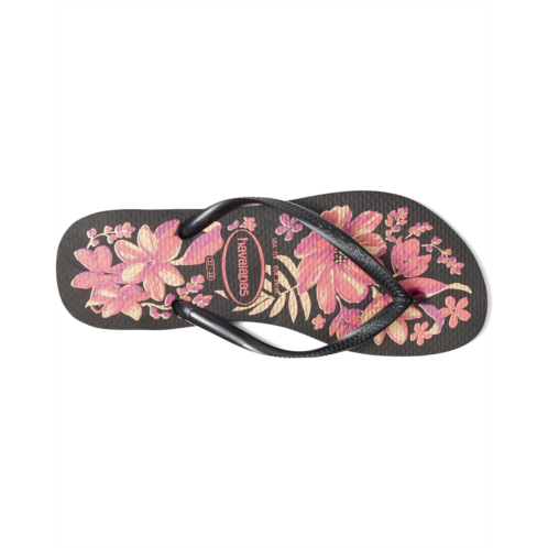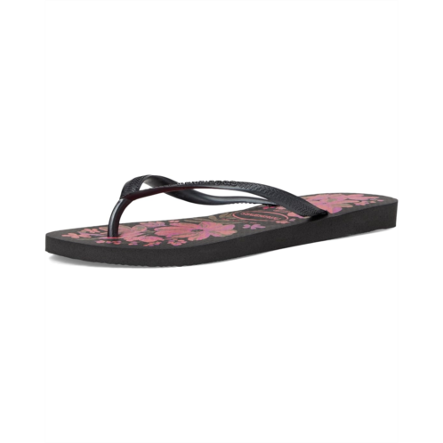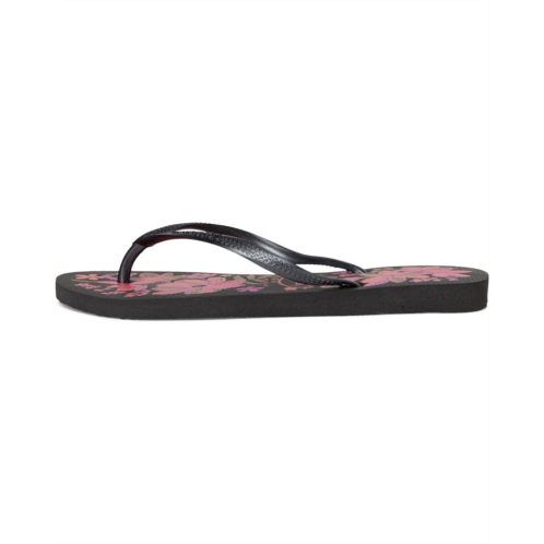 Delicate and romantic, the Havaianas Slim Organic Flip Flop Sandals are one of Havaianas' most classic models. With thinner straps and rubber outsole, these sandals also feature a touch of sophistication with the metallic straps. Adorned with floral prints, the flip-flops are made of a rubber upper, insole, and lining. Whether you're going out to the beach or on a casual walk, these slip-on sandals are a great choice.