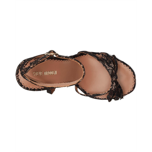 The Steve Madden Hara sandals are heeled sandals featuring an intricate lace overlay for a boudoir-inspired allure. They are made of a polyurethane upper, nylon lining, and nylon insole. The adjustable ankle strap with buckle closure offers a perfect fit. These party-ready sandals are further styled with a coquettish bow and block heels, making them a perfect pick for any occasion.
