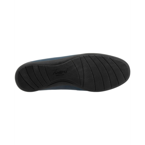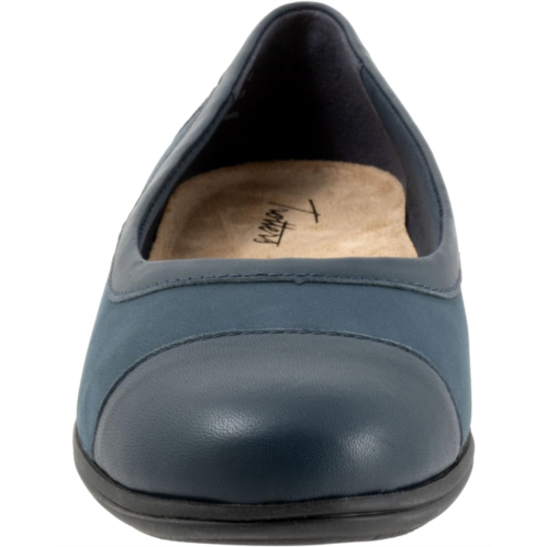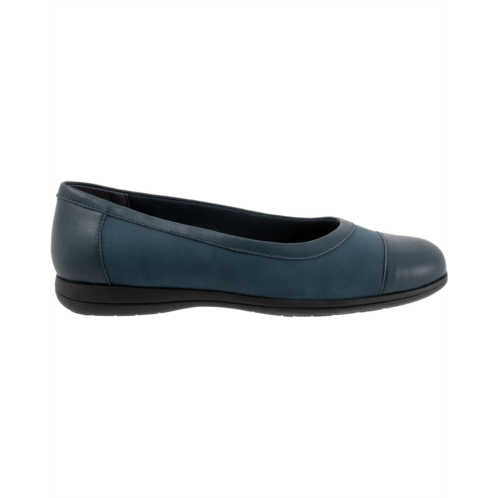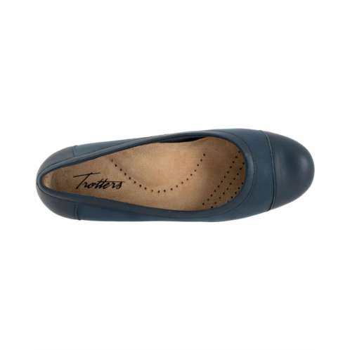 Let your feet enjoy the snug and comfy feel of Trotters Delmara Flats. The pull-on footwear features leather upper with polyester lining and tonal cap toe for a chic look.