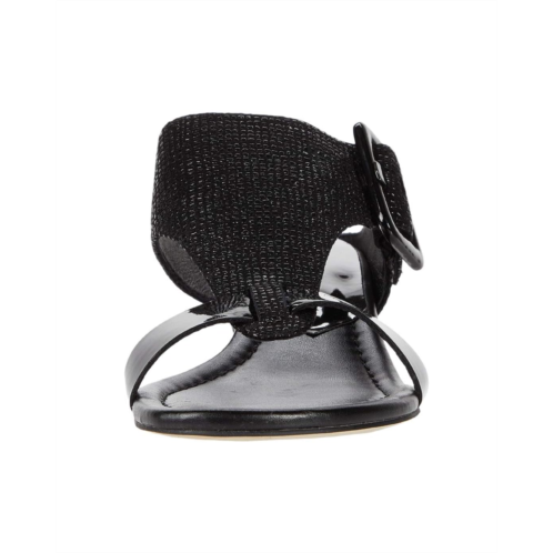 The Donald Pliner Ofelia sandal makes a chic statement with a T-strap silhouette, open toe, oversized buckle detail at the side, and wedge heel.