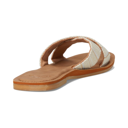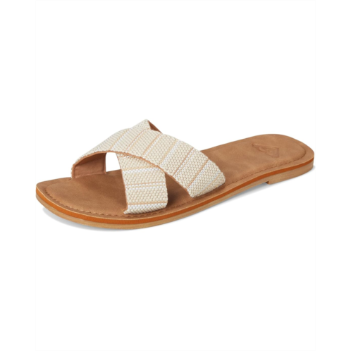Compliment your look wearing the Roxy Andreya Raffia. Crafted from PU upper, and faux leather insole, this pair of sandals features crisscross design textile strap detailing, open round toe, slip-on style, and brand logo on the footbed.