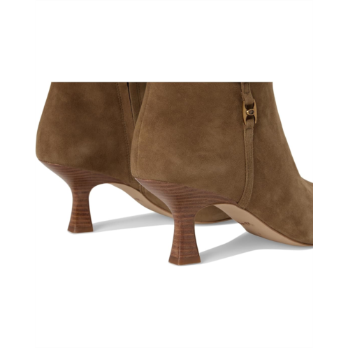 From the desk to dinner, maintain your effortless style in the COACH Raquel Suede Boots II. Featuring a side zipper closure in a square toe silhouette with a kitten heel, these boots are crafted from a smooth leather upper, leather and textile lining and a leather insole.