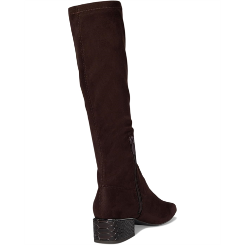 Step up your style donning these sophisticated Donald Pliner Avera knee-high boots, designed for effortless elegance and all-day comfort. Crafted from a smooth, stretch-suede material, these boots offer a sleek, streamlined silhouette that pairs perfectly with any outfit. The standout feature? A low block heel with a chic snakeskin texture adds a subtle yet eye-catching contrast.