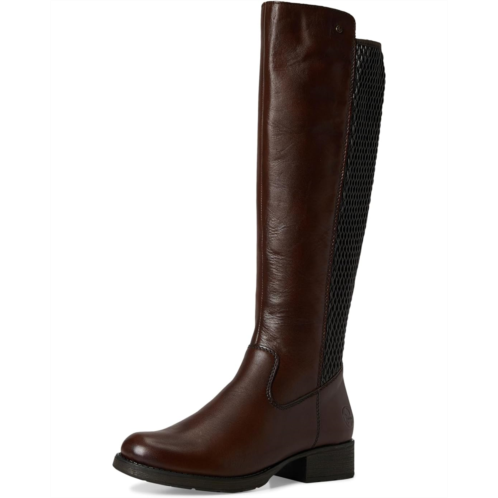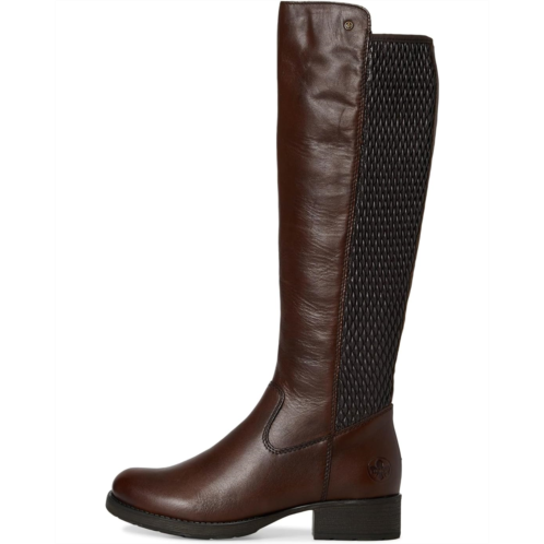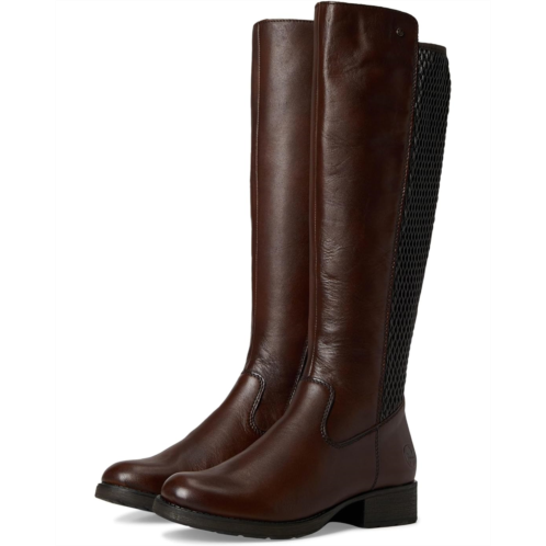 The Rieker Z9591 tall leather boot boasts a stretch back panel for a comfortable fit.