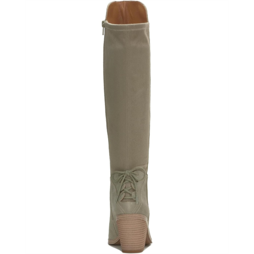 Walk like a diva wearing the Lucky Brand Mekinna. Featured in soft suede leather, this zip-up boot has corsetkorea lace-up detail at the slanted heel and a padded footbed for all-day comfort.