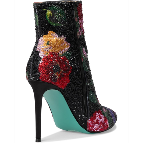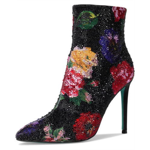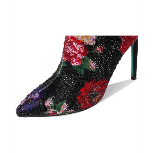 Meet BELLE by Blue by Betsey Johnson, your go-to stiletto bootie for dazzling nights and fancy occasions. Crafted with luxe faux leather for the upper, lining, insole, and outsole, these ankle-high beauties perfectly combine style and comfort. The pointed toe elongates your silhouette, while the sleek stiletto heel adds the right amount of drama for every step. A convenient zippered side closure ensures easy on-and-off wear, making them as practical as they are stunning. But the real showstopper? A delicate floral rhinestone pattern that glimmers with every movement, turning heads wherever you go.