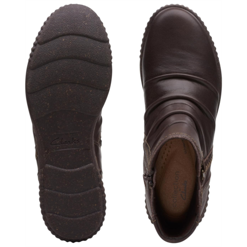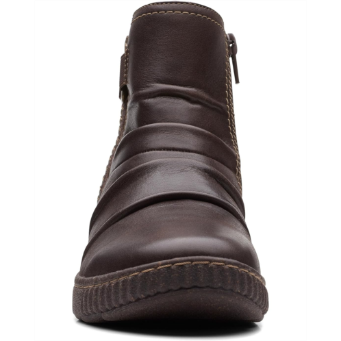 The Clarks Caroline Orchid boots will be an instant favorite in your modern-casual collection. The stylish boots feature a leather upper with stitched details and ultimate comfort 5mm PU foam footbed that delivers lasting cushioning. The boots have an ankle-length silhouette and a round toe design.